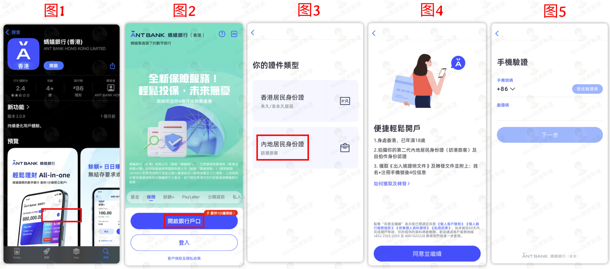 如图 1 所示,在港区 Apple Store 或者 Google Play 上,下载安装蚂蚁香港。