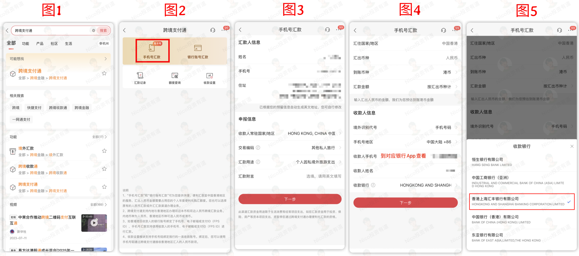 4️⃣ 跨境支付通类似于支付宝,支持手机号、FPS ID 汇款,无需输入银行账号,也可轻松汇款。