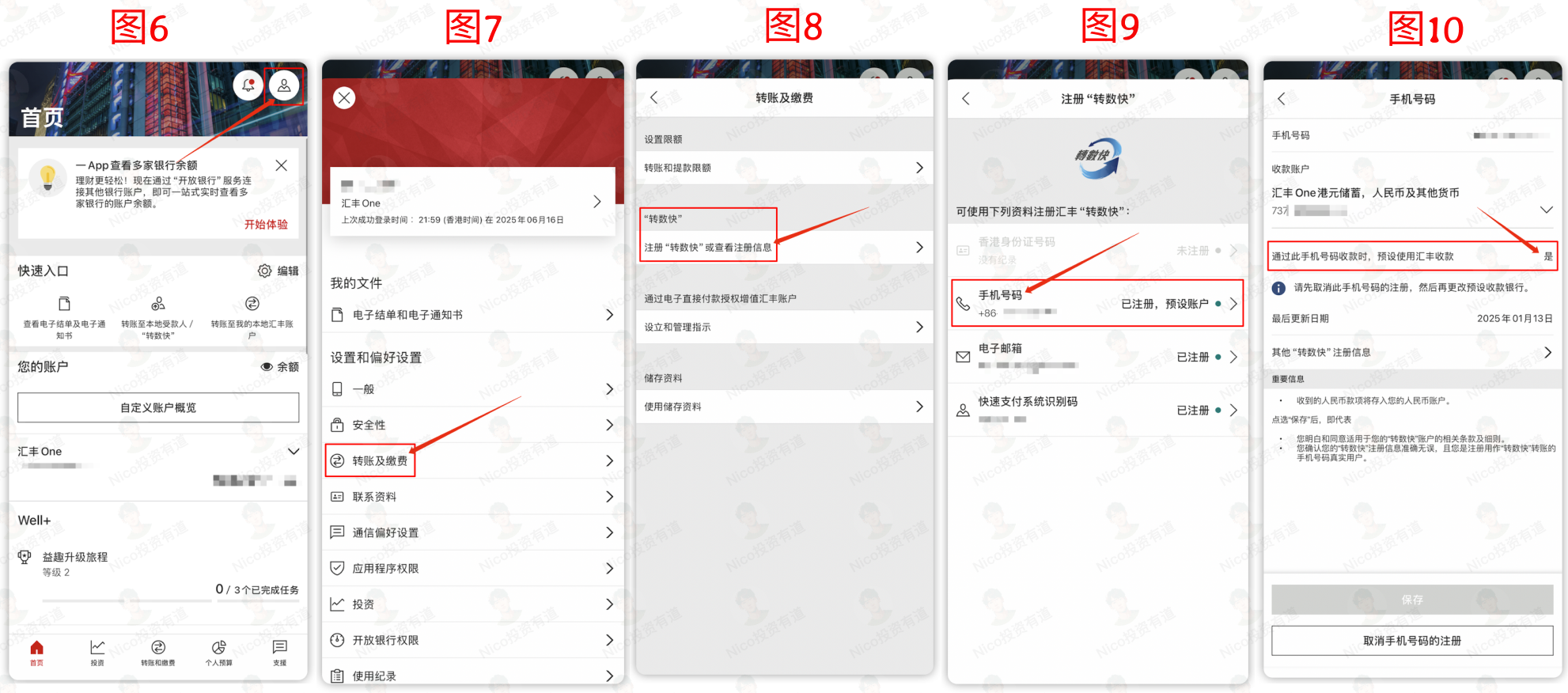 这里的手机号我们需要到香港汇丰 App 上确认一下,主要是确定你的香港汇丰银行是否将手机号绑定到了“转数快”系统上。