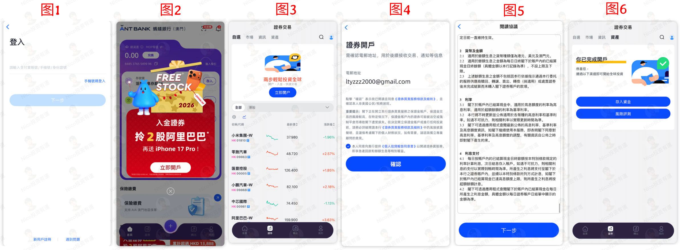 到了澳门之后,下载澳门蚂蚁的 App,全程在线上开户。
