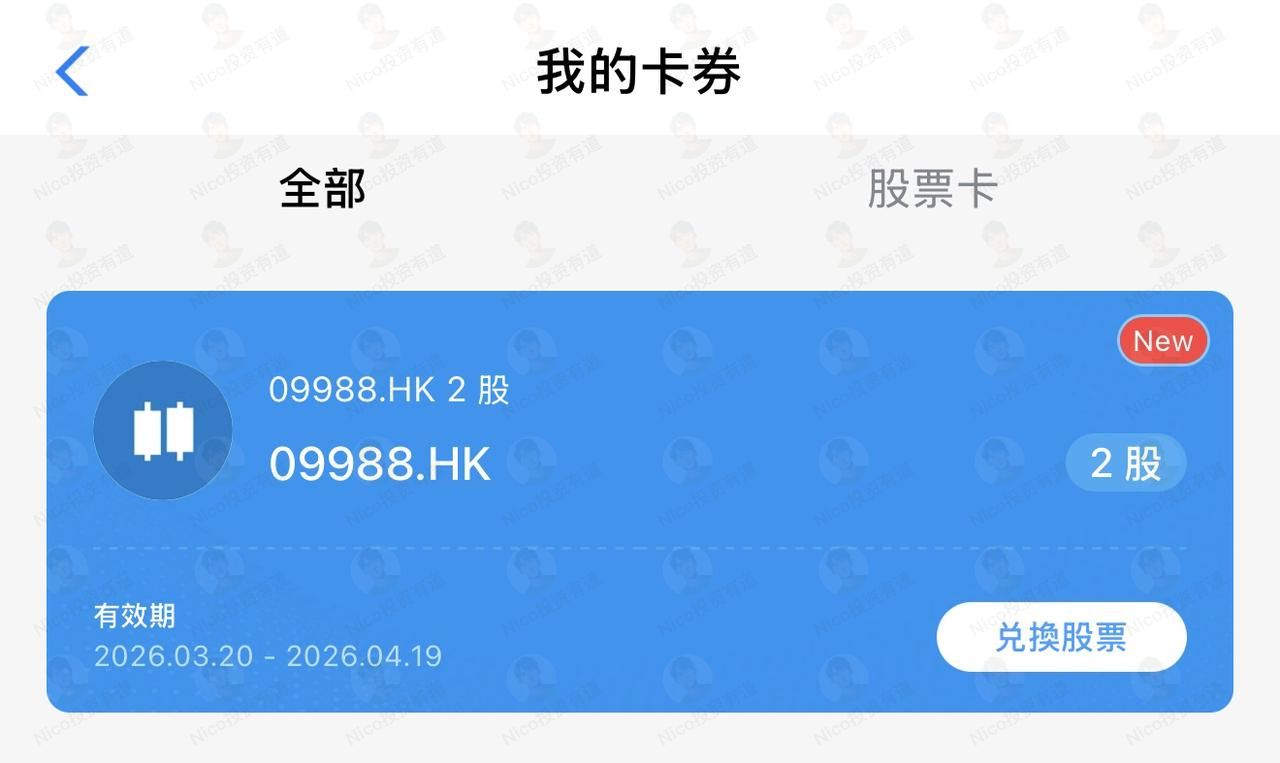 只要入金 3000 港币,直接送阿里巴巴股票,没有资金留存时间的要求。