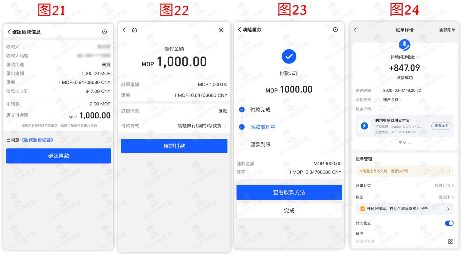如图 23 所示,这样钱就从澳门支付宝出金到内地支付宝了。