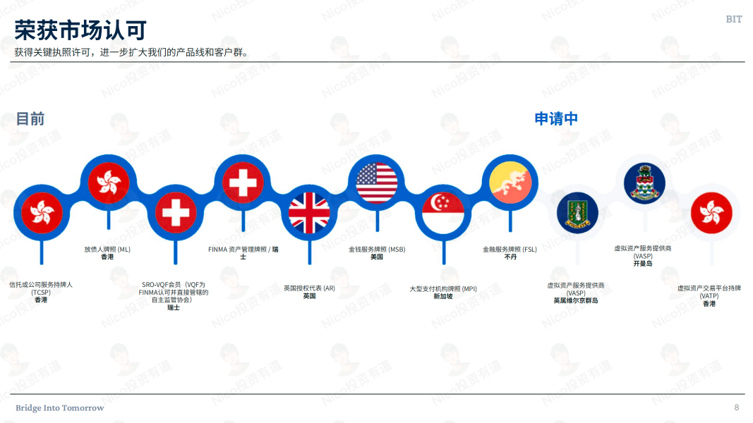 BIT 目前已经拿到了多个国家和地区的金融牌照,如图所示。