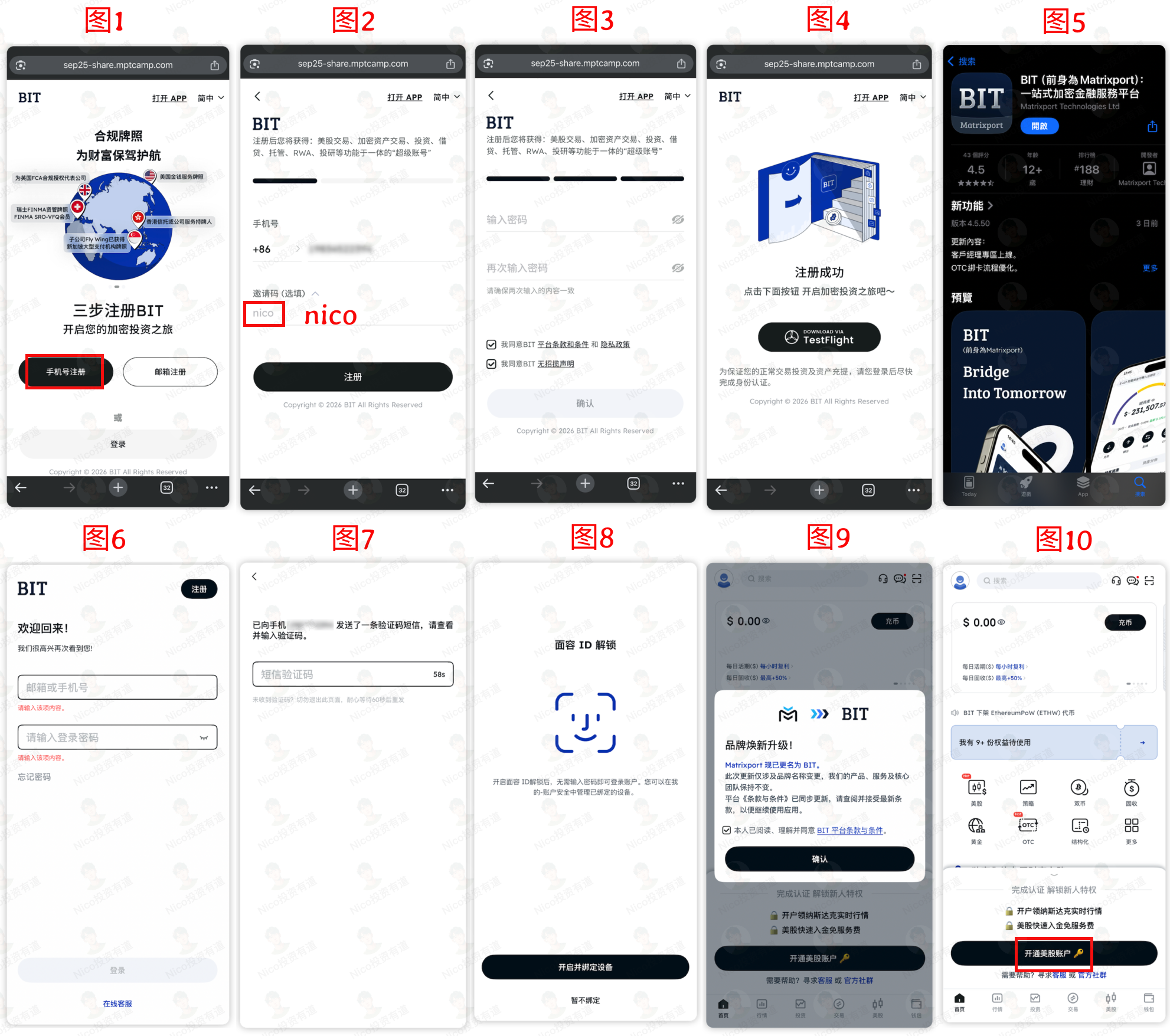 如图 1 所示,打开如下专属邀请链接 https://www.bit.com/zh/us-stock-intro?invite_code=nico
